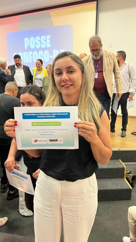 Na última terça-feira, 23, aconteceu em Salvador a cerimônia de posse do Conselho Estadual de Fomento e Colaboração (CONFOCO-BA). A ARCAS participou do chamamento e foi eleita para compor o conselho como membro da sociedade civil no seguimento de Ação Social, ficando ARCAS como titular e Cootraf na suplência. Adriana Sá, tomou posse no conselho representando a ARCAS e Dianini Costa Soares como representante a Cootraf Bahia no mandato 2025-2029.